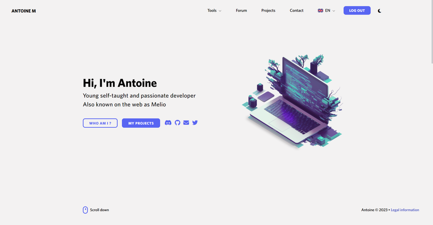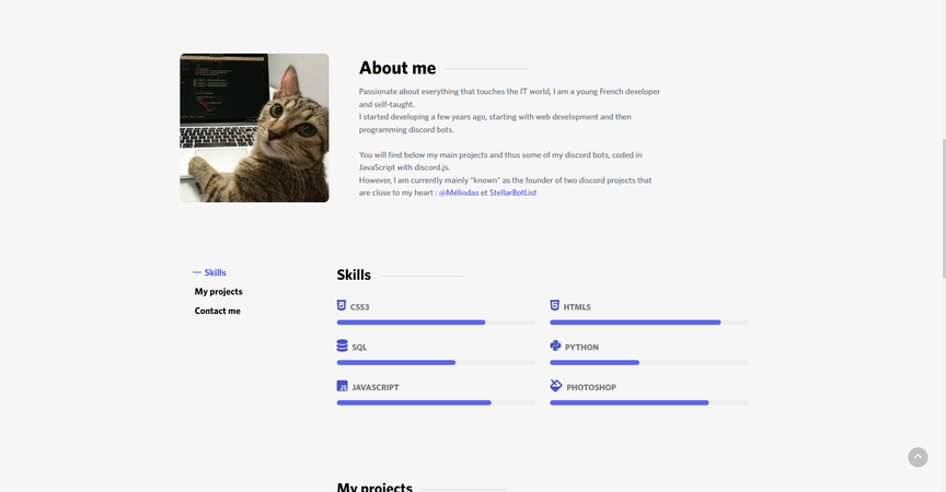 It follows on from a previous site, meliooff.xyz, which was much more simplistic. A few years later, I decided to redesign the site because it was becoming outdated – outdated technologies, legacy code, outdated information –, which is why you are now viewing this new site.